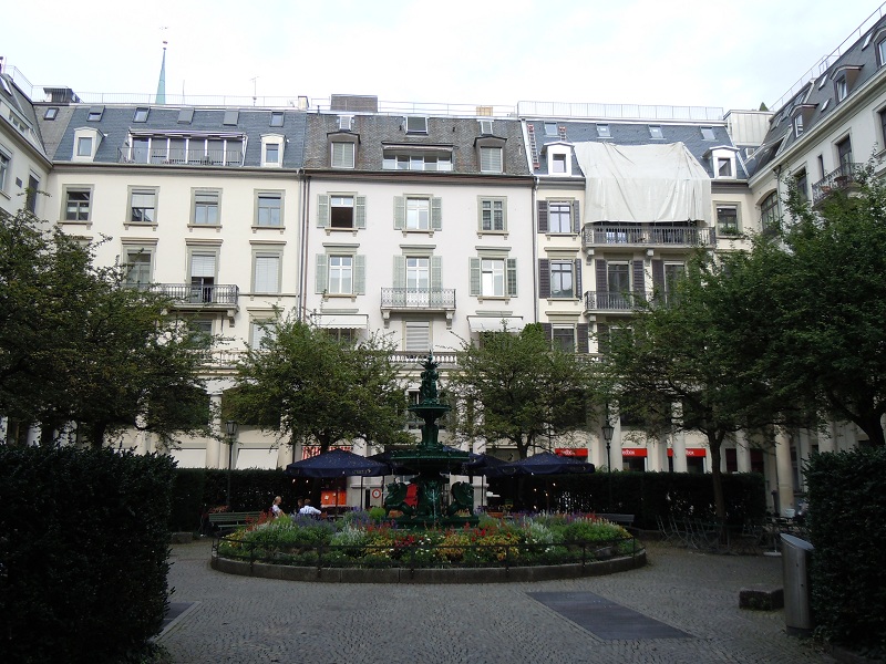 En los aledaños de la Bahnhofstrasse hay también plazas recoletas con fuentes, jardines y bancos (de los de sentarse) que completan la total peatonalización de la zona.