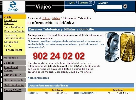 Paralelamente, Renfe se dedicaría sólo a la explotación de los servicios de transporte y su primera versión de la web como simple operadora es ésta, que ya hemos insertado anteriormente.